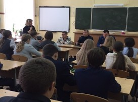 23 октября в школе состоялась встреча старшеклассников с представителями органов правопорядка и медучреждений, на которой шел разговор о пагубном влиянии на организм наркотиков, алкоголя и курения. Перед учащимися выступили помощник прокурора Гузеев Алексей Иванович, врач-нарколог Киреенко Татьяна Степановна и педагог-библиотекарь Самотейкина Алла Михайловна.